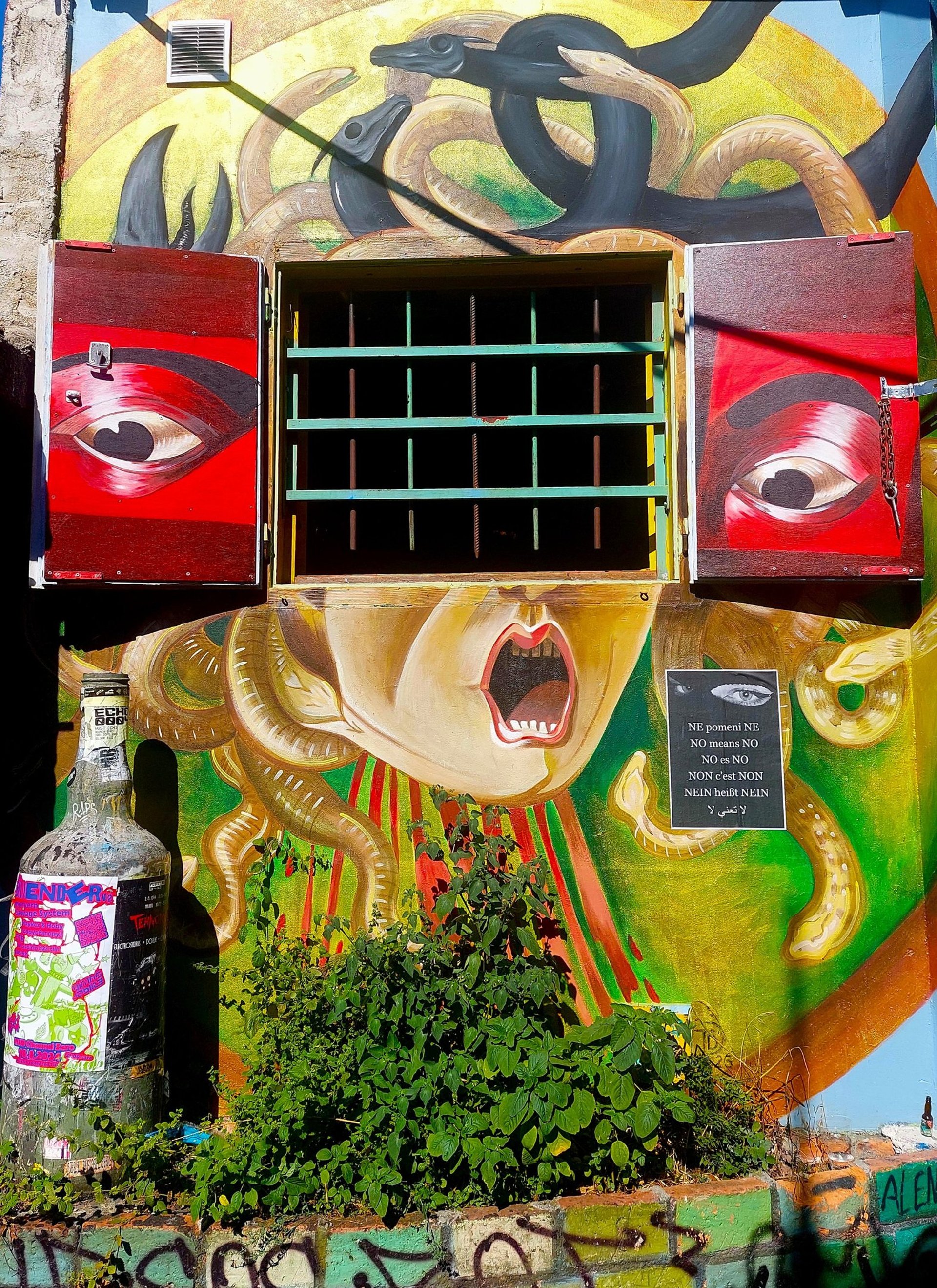 Atravessámos a Ponte dos Talhantes, este nome foi atribuído por em tempos antigos se vender carne ao ar livre, mas atualmente é famosa pelos cadeados de amor pendurados. Depois de constatarmos a narrativa peculiar entre o passado sangrento e o romantismo atual rumámos a um dos pontos culturais mais alternativos de Liubliana - o Metelkova Mesto. Este ponto situa-se num antigo quartel militar que foi ocupado por artistas e ativistas para evitar a sua demolição. Atualmente, é uma zona autónoma dedicada à arte, com uma ampla oferta de atividades como galerias, clubes noturnos, estúdios de música e eventos culturais, incluindo festivais e exposições. Toda esta área é decorada por murais e esculturas únicas, onde à noite se torna num centro popular entre jovens e amantes da música underground. Durante o dia, é um ótimo local para explorar a criatividade e o espírito livre que o caracterizam.