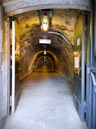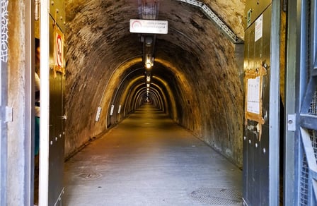 Seguimos para o Túnel Grič (Tunel Grič), construído durante a Segunda Guerra Mundial, foi projetado originalmente como um abrigo antiaéreo, mas que foi transformado num espaço multifuncional e tornou-se uma atração turística popular, ligando a Rua Mesnička (Mesnička Ulica) à Rua Radićeva (Radićeva Ulica).
