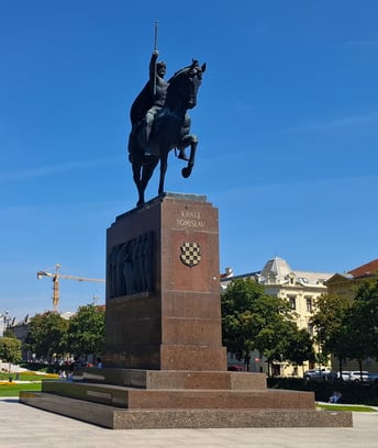 O anoitecer foi passado na Praça Ban Jelačić (Trg Bana Josipa Jelačića), considerada o ponto de transição entre as duas partes da cidade, a Cidade Alta (Gornji Grad) e a Cidade Baixa (Donji Grad). Esta transição é mais simbólica do que física, mas é claramente perceptível tanto em termos geográficos quanto arquitetónicos. Voltando à Praça Ban Jelačić, o ponto central é a Estátua Equestre de Ban Josip Jelačić (Konjanički Spomenik Bana Josipa Jelačića), que durante o período socialista foi removida, no entanto, após a independência da Croácia, foi reinstalada.